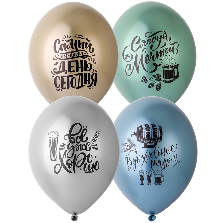 Высококачественный шар из натурального латекса. Ассорти из 10-12 цветов, типа пастель. Шары с двусторонним шелкографическим рисунком. Идеальный ассортимент для розничной продажи воздушных шариков.