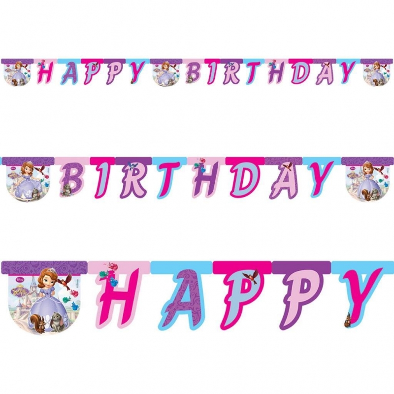Юной принцессе Софии так многое нужно преодолеть, чтобы стать настоящей королевской особой! Ей помогали и феи, и лесные зверушки, а теперь София приглашает тебя на свой первый бал! Гирлянда-поздравление с днем рождения станет прекрасным украшением бальной залы! Длина гирлянды 190 см,буквы скреплены между собой, на концах гирлянды ленточки, чтобы можно было ее закрепить.
