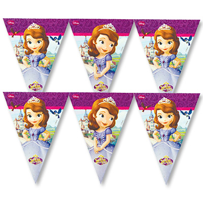 Юной принцессе Софии так многое нужно преодолеть, чтобы стать настоящей королевской особой! Ей помогали и феи, и лесные зверушки, а теперь София приглашает тебя на свой первый бал! Гирлянда из флажков станет прекрасным украшением бальной залы! Длина гирлянды 230 см, выполнена из полиэтилена.