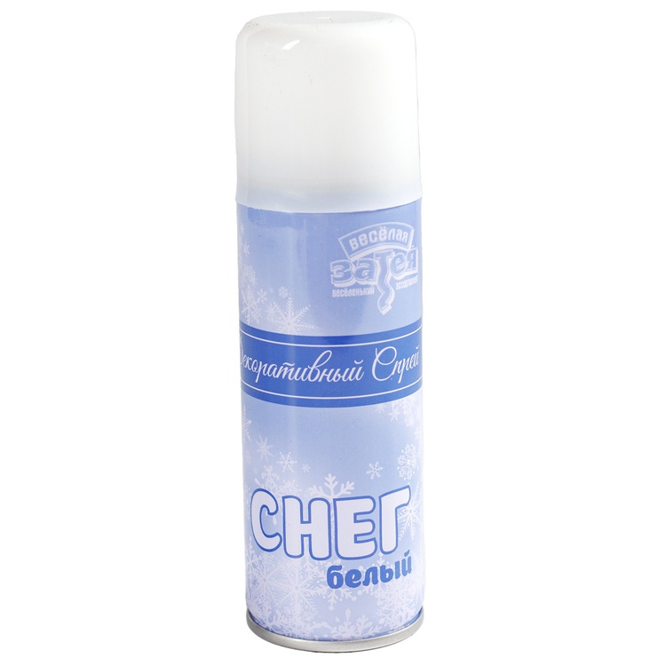 Баллончик с полимерным веществом, создающей эффект выпавшего снега. Предназначен для украшения помещений к Новому году и новогодних елок. Может также использоваться для рисования узоров на окнах и стенах через трафарет. Не исчезает после нанесения. Легко смывается мыльным раствором.
