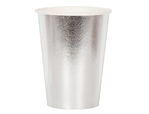 Бумажный стаканчик серебрянного цвета. В наборе 6 стаканов объемом 210мл.