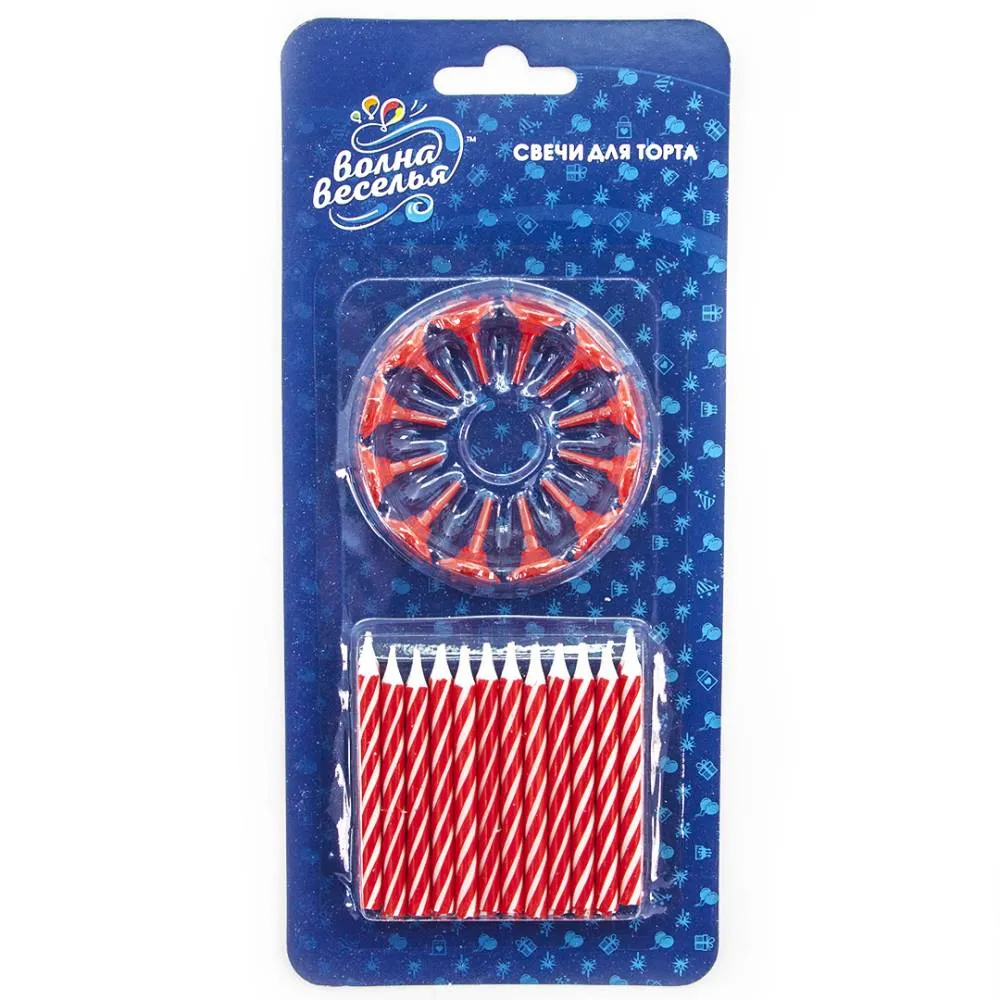Свечи Белые полоски Красный 6см 24шт 620108
