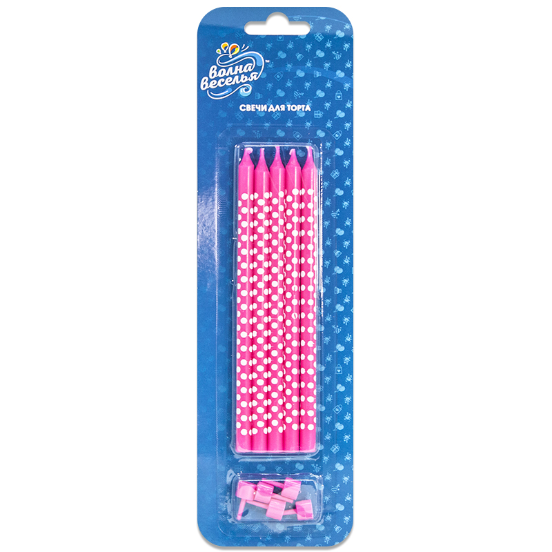 Свечи Белые точки, розовый 15см 5шт/132415