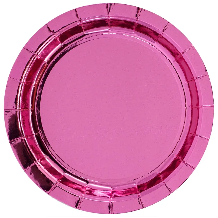 Ламинированные бумажные тарелки золотого цвета. Универсальны, подходит для любого праздничного фуршета. Выглядят стильно, нарядно и ярко. В наборе 6 тарелок золотого размером 17 см. Купить красивую одноразовую посуду оптом можно на нашем сайте.