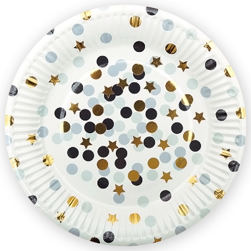 - Тарелки белые Конфетти 6шт 9дюймов