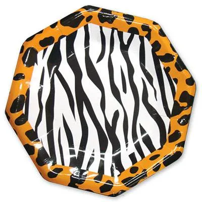 Набор из шести бумажных тарелок в стиле сафари - в лаконичной гамме белого, черного и медного: шкуры зебры и леопарда. Можно провести сафари-пати или вечеринку в стиле минимализма. Тарелка необычной - восьмиугольной формы.