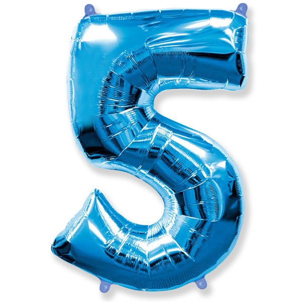 Цифра "5" Синяя 102 см с гелием