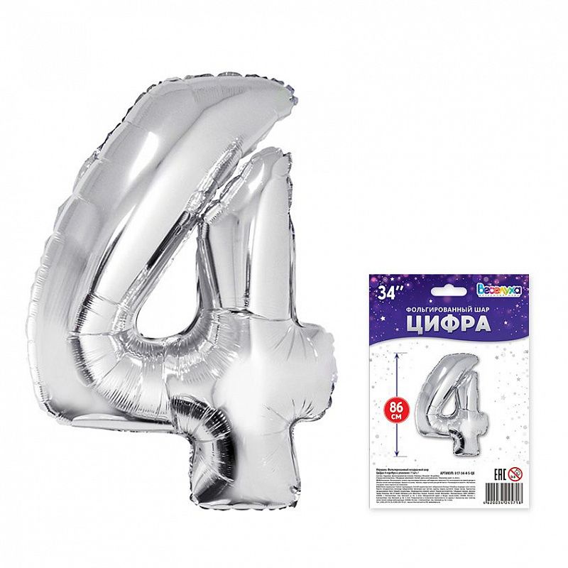 Цифра "4" - серебро в упак 34" / Китай