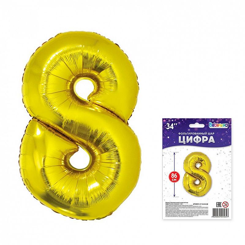 Цифра "8" - золото в упак 34"/ Китай
