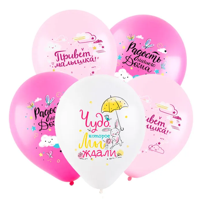 Высококачественный шар из натурального латекса. Ассорти из 10-12 цветов, типа пастель. Шары с двусторонним шелкографическим рисунком. Идеальный ассортимент для розничной продажи воздушных шариков.