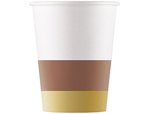 Бумажный стаканчик объемом 200мл. Используется совместно с другими элементами коллекции по дизайну(тарелки,салфетки, скатерти и т.п.) как украшение стола или по своему непосредственному назначению.