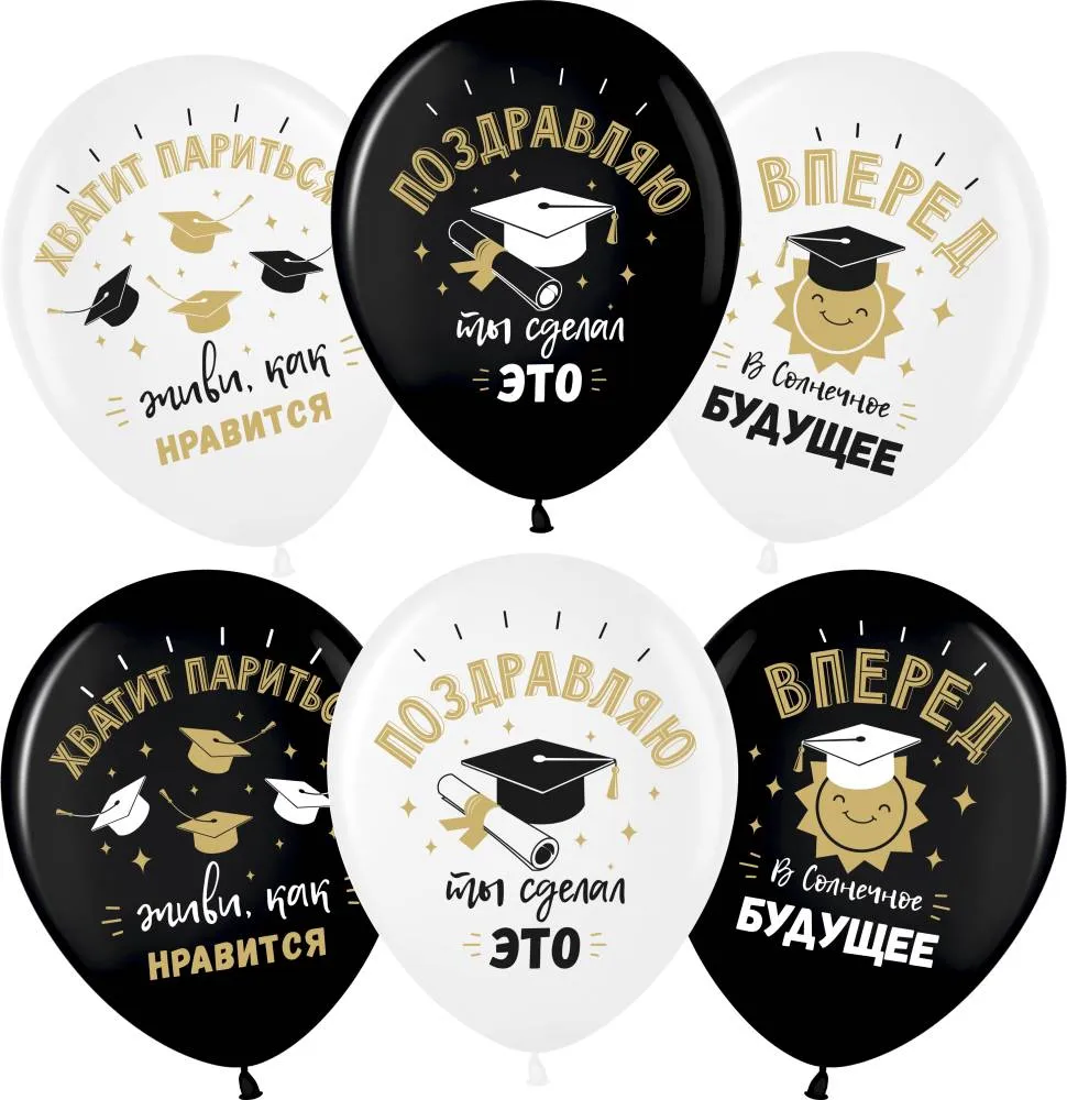 12" Поздравляю, Выпускной! белый/черный пастель/Малайзия/711406,711406-25