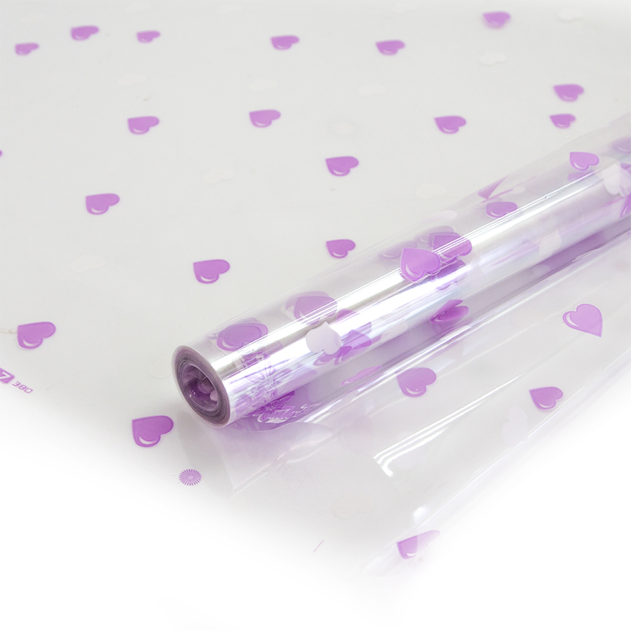 Пленка упаков Сердечки Сиренев/Белый /70см*8м 73105