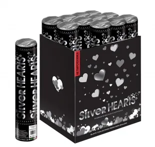 Пневмохлопушка 30 см. "Металлизированные сердца" Серебро / 823121