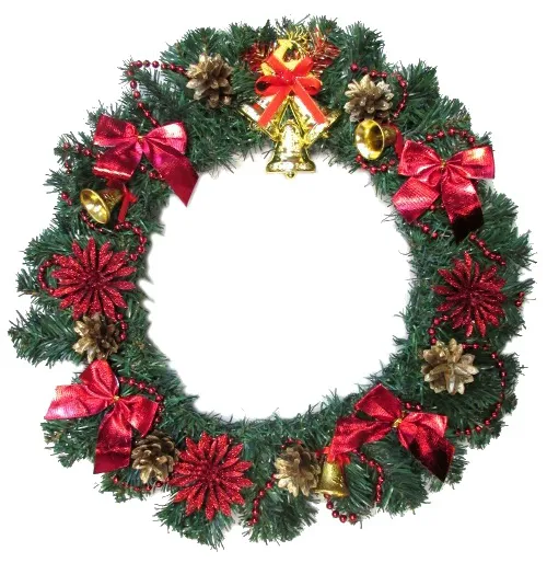 - Венок новогодний с цветами 45 см (М01022)