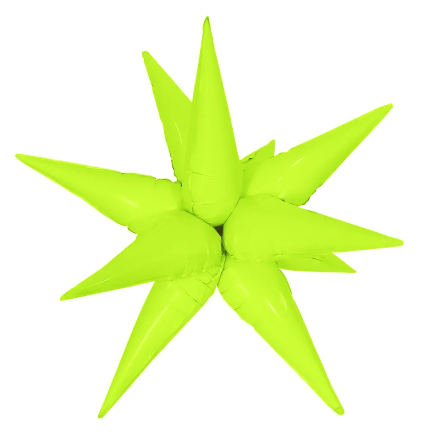 Комплект содержит 13 элементов (конусов) - 12 используются для составления звезды, 13й запасной. Размер одного элемента: 35см (Д) х 14см (Ш). Каждый элемент имеет встроеный клапан и надувается воздухом. Надутые элементы необходимо попарно связать между собой за хвосты и затем соединить пары друг с другом таким образом, чтобы получилась звезда. Более подробная иструкция сборки изображена на задней стороне хедера.