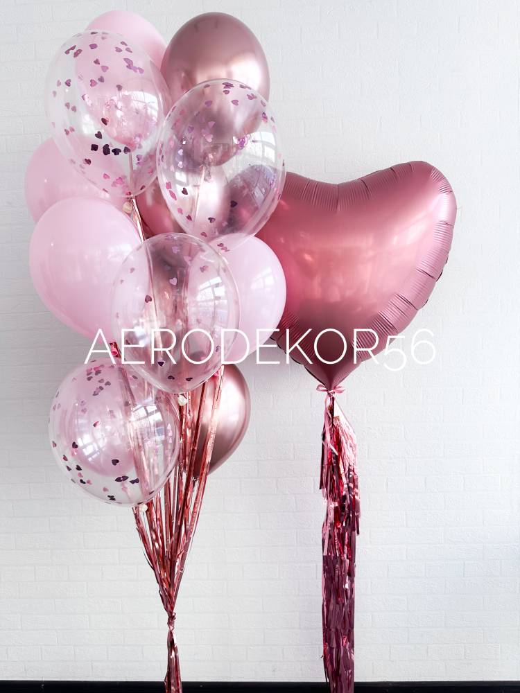 фольгированное сердце гигант 1шт, шар хром 4шт, шар с конфетти 4шт, латексный шар 5шт, грузик 2шт