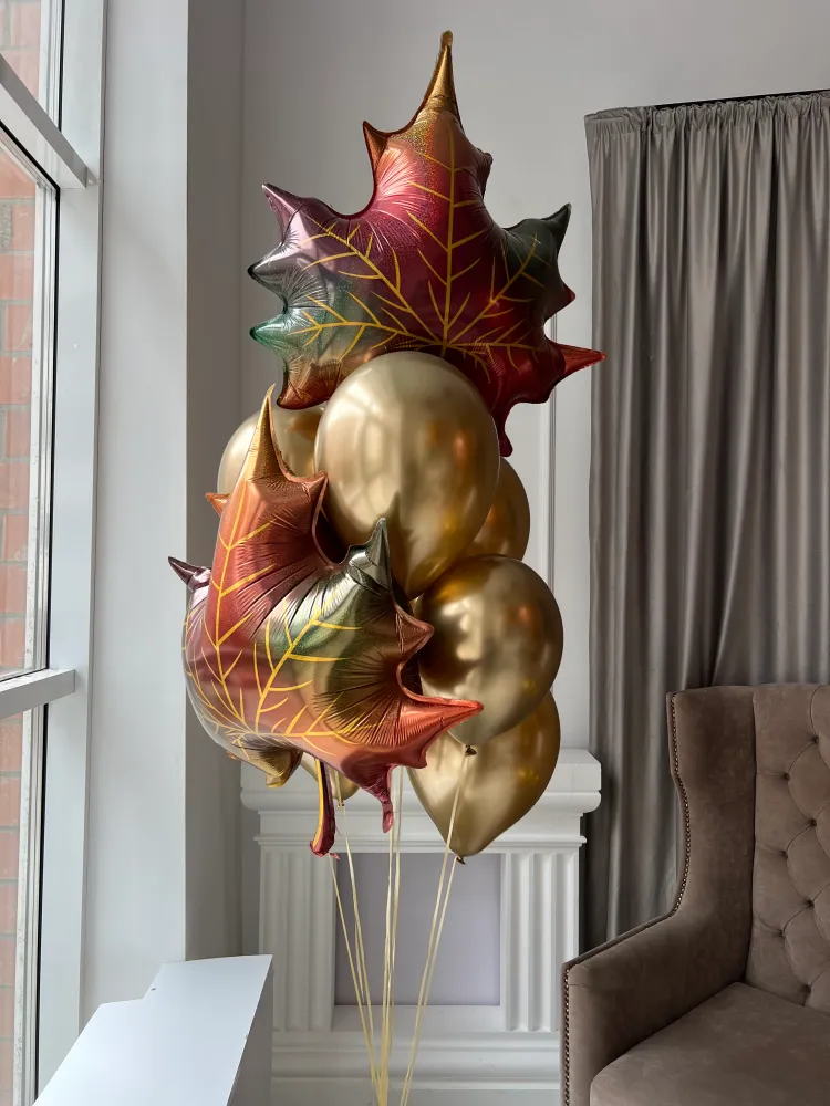 шар хром 7шт, фольгированный кленовый лист 2шт. грузик 1шт