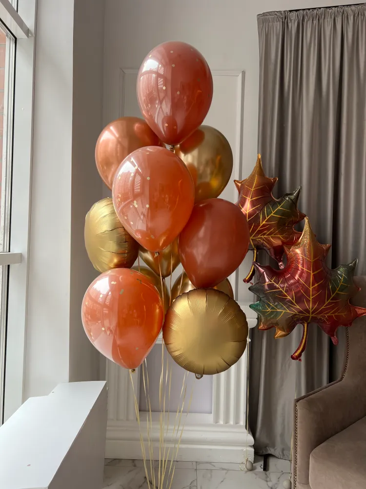 фольгированный кленовый лист 2шт. шар хром 4 шт. шар дабл-стаф 4шт. фольгированный круг 2шт, грузик 3шт