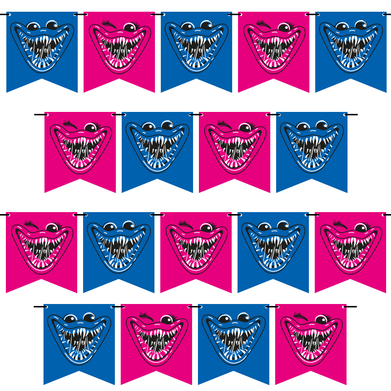 - Гирлянда-флажки "Зубастики синий/фуше" 300 см /62529