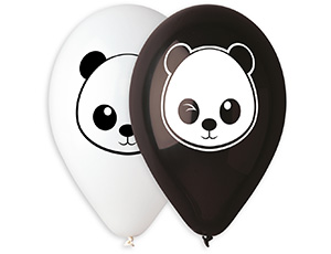 Воздушные шары с рисунком очаровательной панды. В наборе шары двух цветов: белый шврик с рисунком церного цвета и черный шарик с рисунком белого цвета. Рисунок расположен с двух сторон шара. Идеальный шарик для розничной продажи и украшения дней рождений малышей.