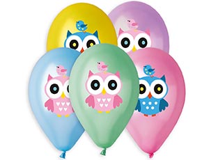 Воздушные шары с крупным стильным многоцветным рисунком совы Совушки. Печать с одной стороны шара. В наборе используются шар металлик нежных оттенков. Идеальны для украшения и как небольшой подарок ребенку. Размер шаров в надуве - 35 см, продаются ненадутыми, подходят для надува как гелием, так и воздухом при помощи ручного насоса. Производство: Gemar, Италия.