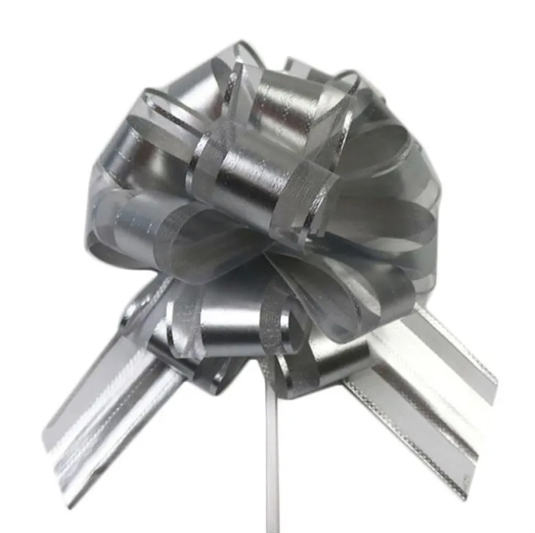 Востребованность подарочных бантов вызвана простотой сборки - нужно всего лишь одной рукой зафиксировать ленточку-бант за место последней спайки и второй рукой потянуть ленточки внутри банта - соберется красивый подарочный бант. Второй плюс этого вида бантов - достаточно низкая цена.