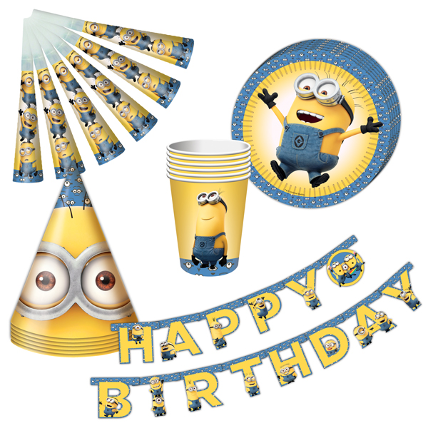 Красочный дизайн с изображениями любимых персонажей - то что нужно, что бы сделать праздник незабываемым! Такая посуда абсолютно безопасна и ее не надо мыть. Гирлянда преобразит ваше помещение, а набор дуделок поможет организовать конкурсы и другие развлечения. приобрести набор для Дня Рождения в стиле Миньонов вы можете сделав заказ на нашем сайте.