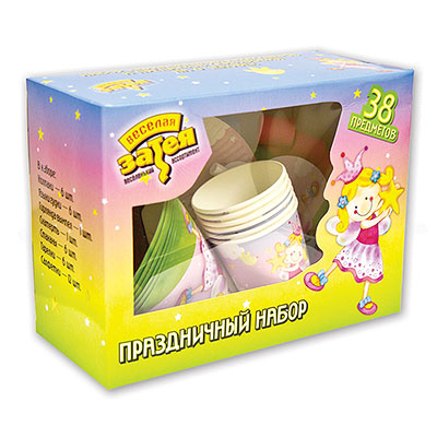 Набор товаров для праздника с прекрасной феей, ей поют птички и улыбаются цветы, и звезды падают в ее ладошки. Набор рассчитан на 6 персон. С ним легко и быстро создать атмосферу праздника в любом месте. Все неотъемлемые атрибуты праздника в наборе: Скатерть - 1 шт. Бумажные Стаканы - 6 шт. Ламинированные Тарелки - 6 шт. Салфетки - 12 шт. Колпачки - 6 шт. Языки-гудки - 6 шт. Гирлянда-вымпел - 1 шт.