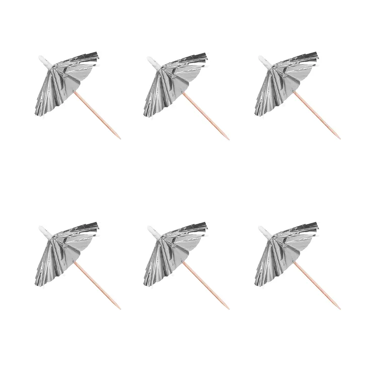 Шпажки "Зонтики" серебро голография фольг. 10 шт./1707413