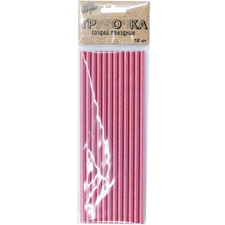 - Трубочка д/кокт гологр розовая 12шт./1502-4090