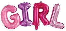 Фольгированный воздушный шар в виде надписи "Girl" с клапаном! Надувается только воздухом. Размер не надутой фигуры: 109 см х 34 см