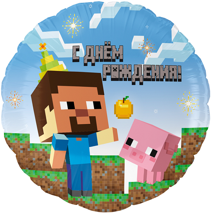 18" Круг, Пиксели, С Днем Рождения! (Китай) / 26469