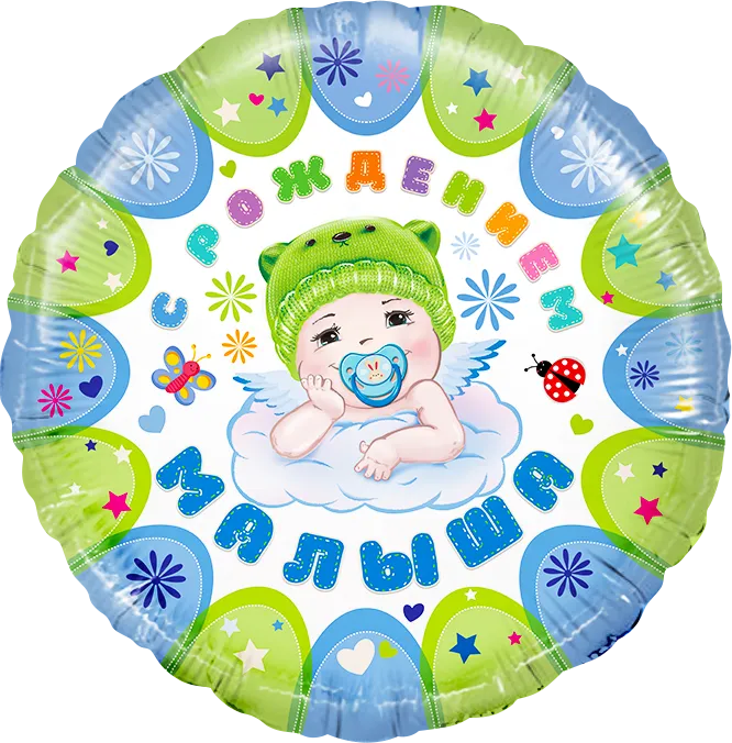 18" Круг С рождением малыша, голубой/ Китай 13216