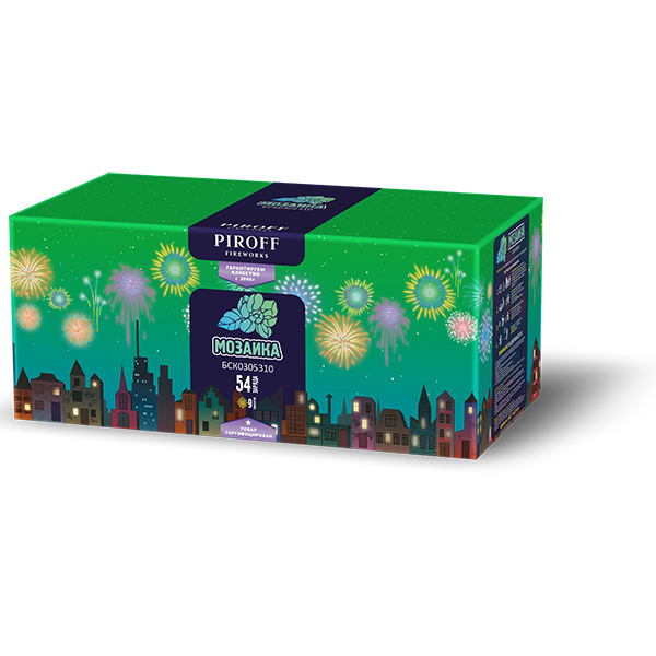 Золотые пауки с золотым блеском, трещащее облако с ярко-красными звездами, красно-синие пионы, трещащее облако с ярко-зелеными звездами, разноцветные хризантемы с треском, трещащее облако с синими звездами, пауки с синими жемчужинами, золотое облако с пурпурными жемчужинами, финал: золотая мерцающая парча.