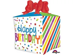 Оригинальный, необычный, квадратный воздушный шар в виде подарка с бантом и надписью Happy Birthday (С днём рождения). Такой шар понравится и взрослым, и детям! Может стать самостоятельным подарком, а также отлично дополнит основной презент или букет цветов. При надувании используется только гелий. Имеет встроенный клапан - что упрощает надувание. Правильно надутый шар не сдуваться от нескольких дней до нескольких недель.