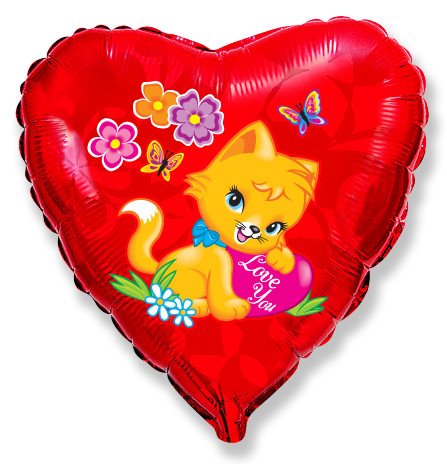 18" Сердце Влюбленный котенок (Flexmetall)/201701