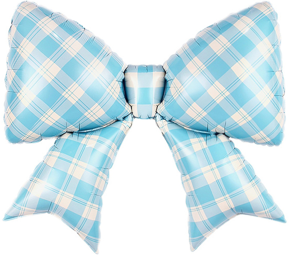 38" Бант, клетка вишни, голубой сатин / Китай 27321