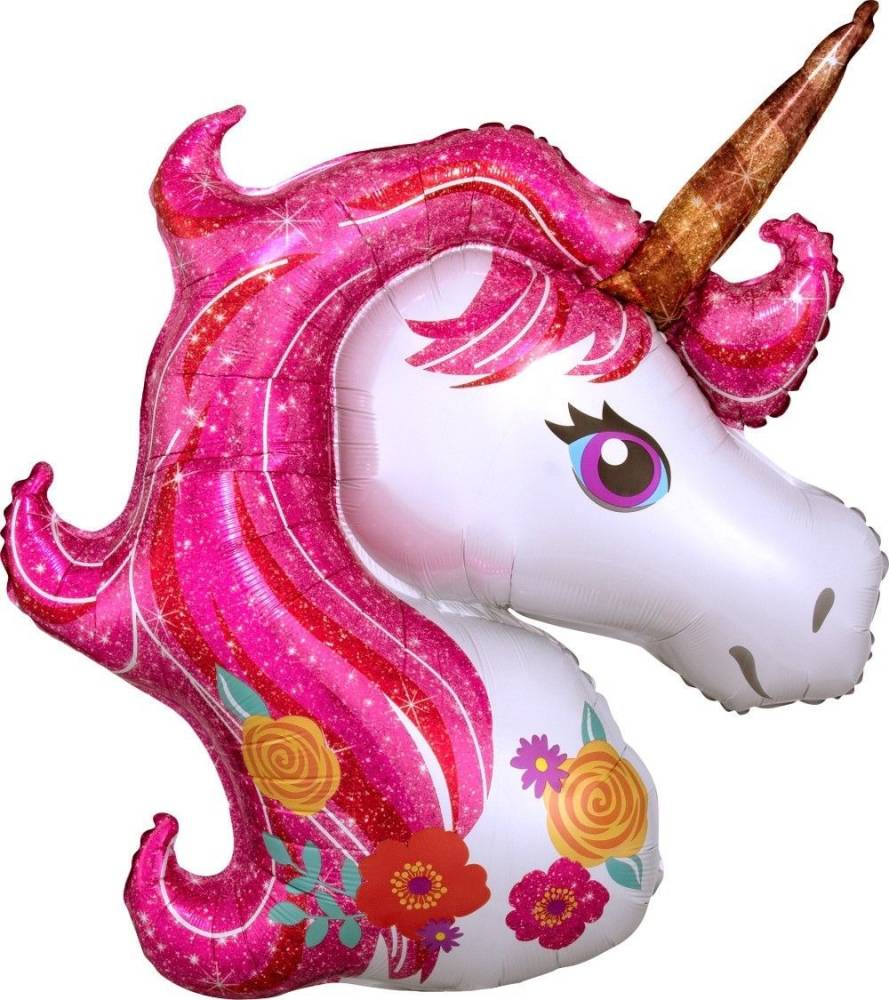 МИНИ Голова Единорог цветочный, розовый 17238