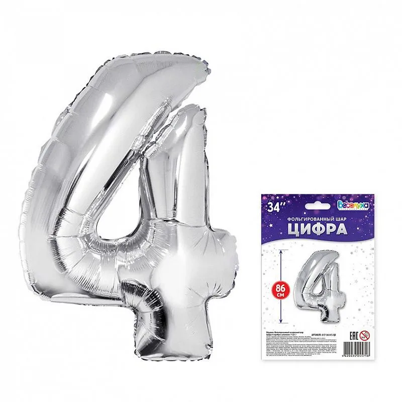 Цифра "4" - серебро в упак 34" / Китай