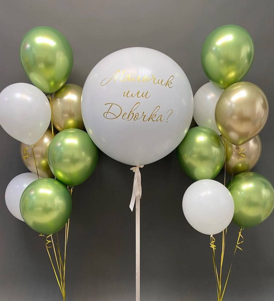 Шар 24 дюйма с индивидуальной надписью с наполнением на выбор: (шарики, конфети, перья) на грузике на атласной ленте