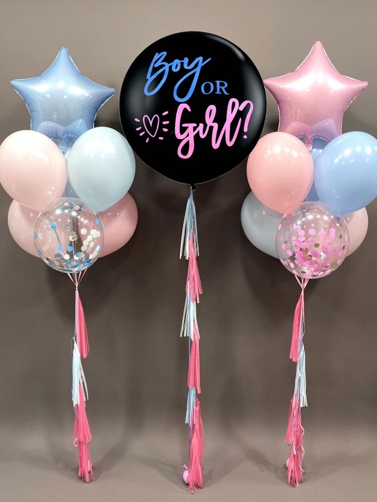 Шар 24 дюйма с индивидуальной надписью на подставке с наполнением на выбор: (шарики, конфети, перья) на грузике с тассел гирляндой
