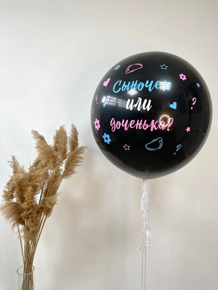 Шар 24 дюйма с надписью «сыночек или доченька» с наполнением на выбор: (шарики, конфети, перья) на грузике.