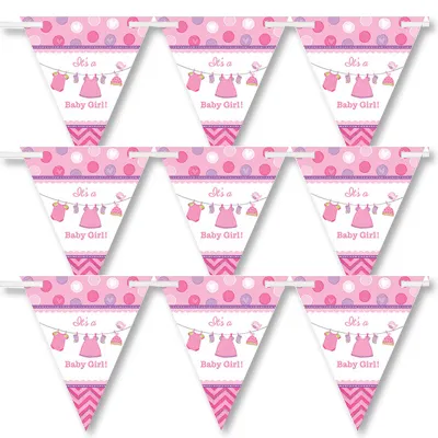 Флажки с надписью It's a girl помогут украсить комнату для встречи новорожденной малышки. В комплекте прилагается 4,5 м атласной ленты, на которую вы можете закрепить флажки. Можно создать единую длинную гирлянду или несколько небольших.