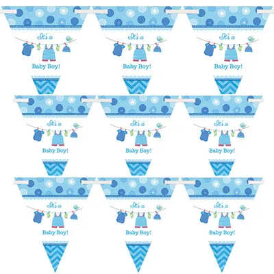 Флажки с надписью It's a boy помогут украсить комнату для встречи новорожденного. В комплекте прилагается 4,5 м атласной ленты, на которую вы можете закрепить флажки. Можно создать единую длинную гирлянду или несколько небольших. В наборе 24 бумажных флажка длиной 18 см.