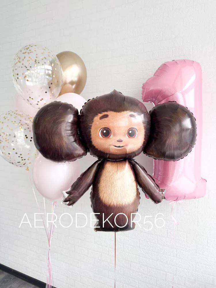 фольгированный чебурашка 1шт, фольгированная цифра 1шт, латексный шар 4шт, хромированный шар 1шт, шар с конфетти 2шт, грузик 3шт