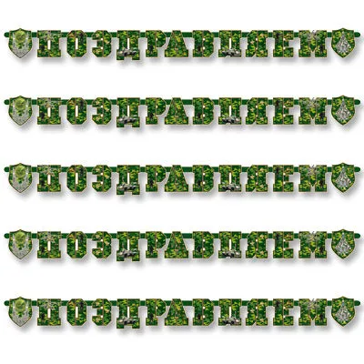 Гирлянда - буквы "Поздравляем Камуфляж" 200см