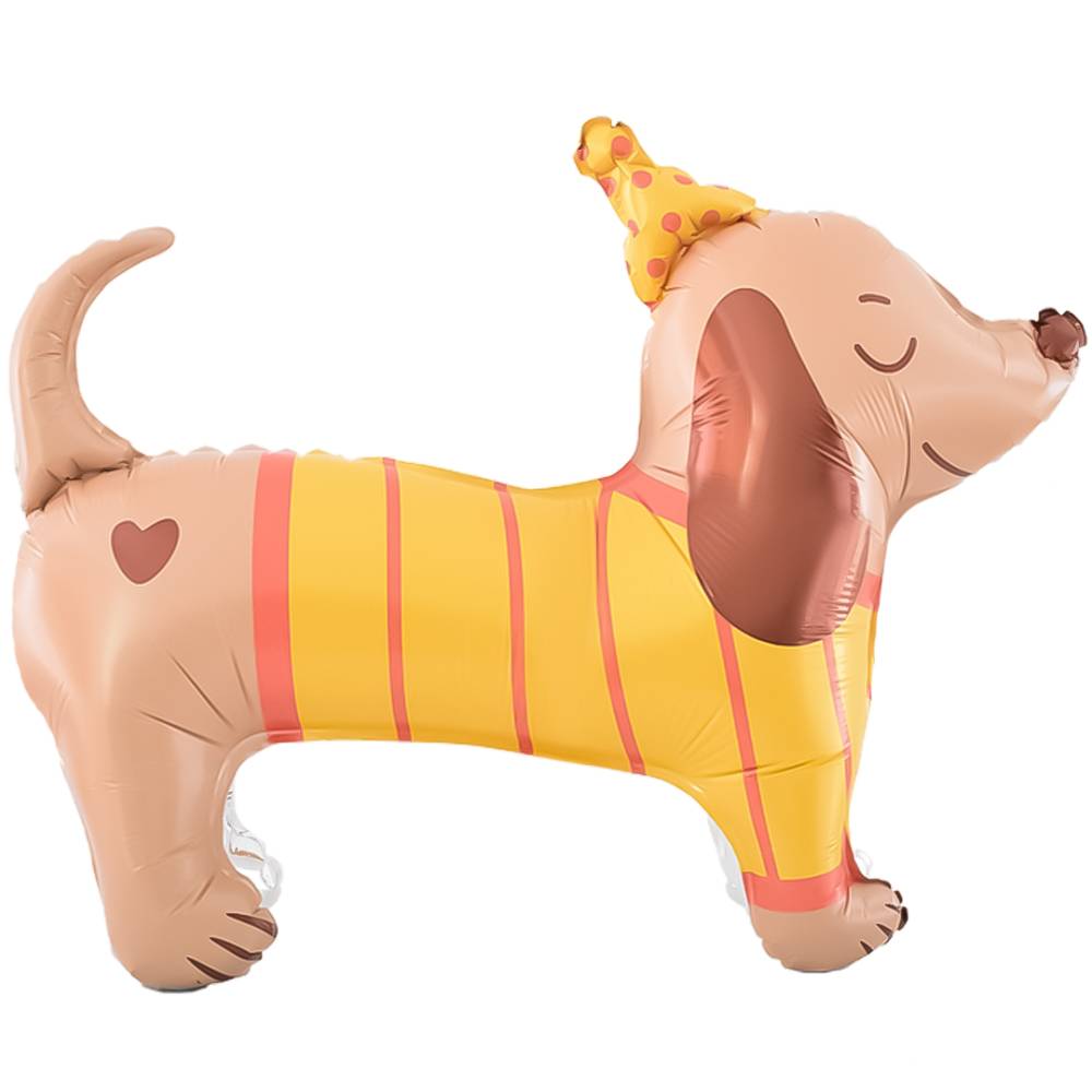 Фольгированный воздушный шар в виде фигуры. Имеет встроенный клапан. Приспособлен под воздух. Фольгированные воздушные шары изготавливаются из тонкой миларовой пленки, позволяющей шару не сдуваться в течение нескольких дней. Фольгированные воздушные шары надувают через клапан. Поэтому плотно надутый шар завязывать не требуется - обратный клапан хорошо удерживает воздух внутри шара. Сдувшийся фольгированный шар можно поддуть воздухом и он всегда будет иметь товарный вид