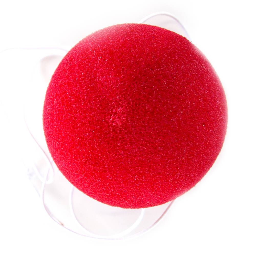 Клоунский нос большой (диаметр 60мм)- карнавальное украшение, крепится на резиночке, используется совместно с париками, колпаками поролоновыми ушами и т.п.