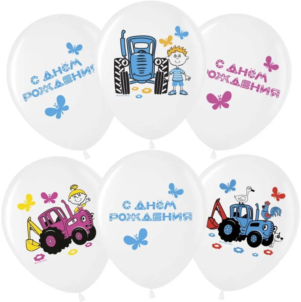12" Синий трактор, Белый пастель (25 шт)/Малайзия 501615